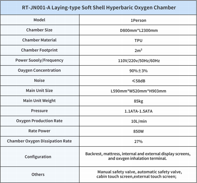RT-JN001-A Laying-type Soft Shell Hyperbaric oxygen chamber